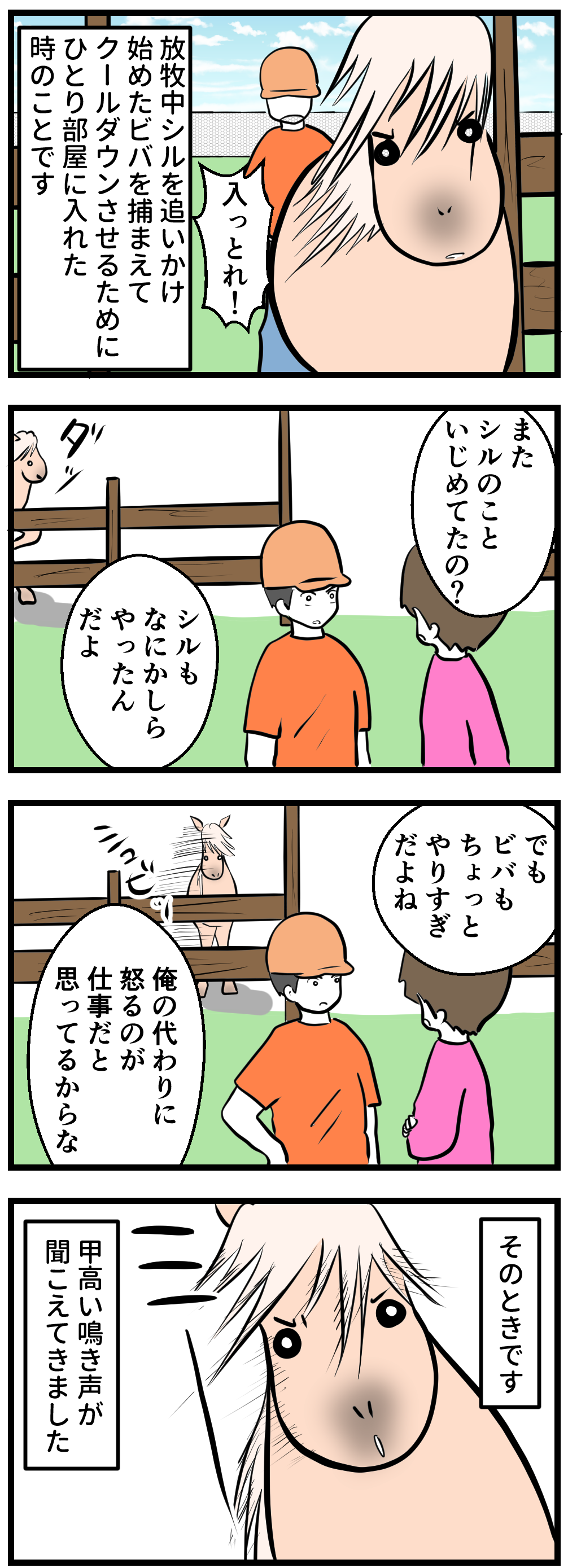 2022年09月17日 馬の鳴き声のレパートリーが増え続けています いまにはしゃべりだしそう‥‥‥ 物を使う、ボディーランゲージで表す‥‥‥、あらゆる手段を使って気を引こうとするビバたん。今年から「ミー」と甲高い声で鳴くようになったことは以前お伝えしましたが、ミーが我々に通用しないときは、「ブヒュン」と鳴くようになりました。うちはシル以外、本当に鳴き虫で、もし言葉を話せるようになったら相当にぎやか(うるさい)なんだろうなと思うのでした。 「馬の個性」カテゴリの最新記事