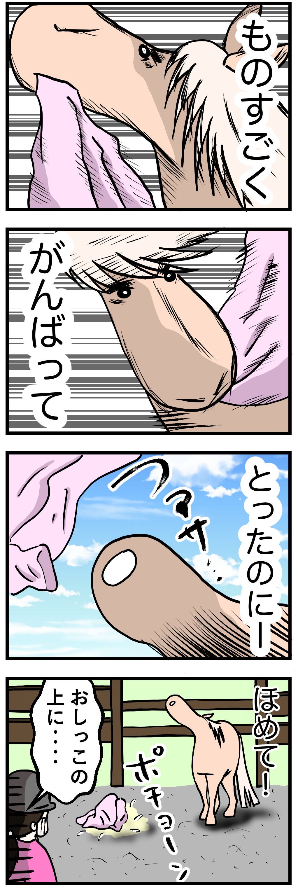 大抵大人数で入ってきて一人が乗るのをみんなでわいのわいの言いながら見ている、というスタイルが定番なのですが、中には一人でふらりと入ってきて、ずっとウマコと見つめあっているという人もいるのです。