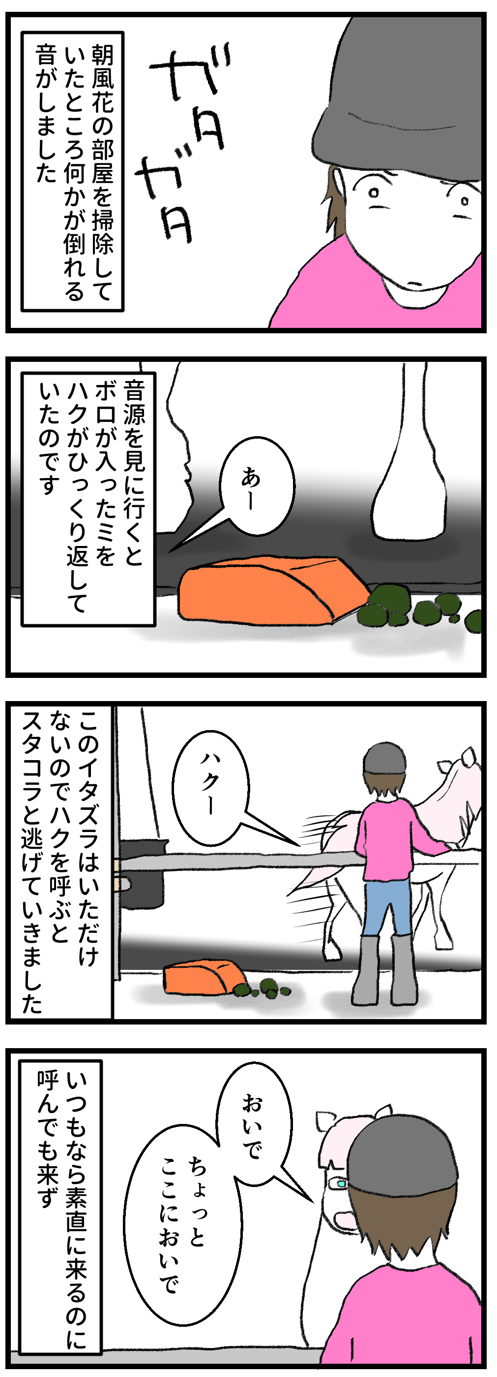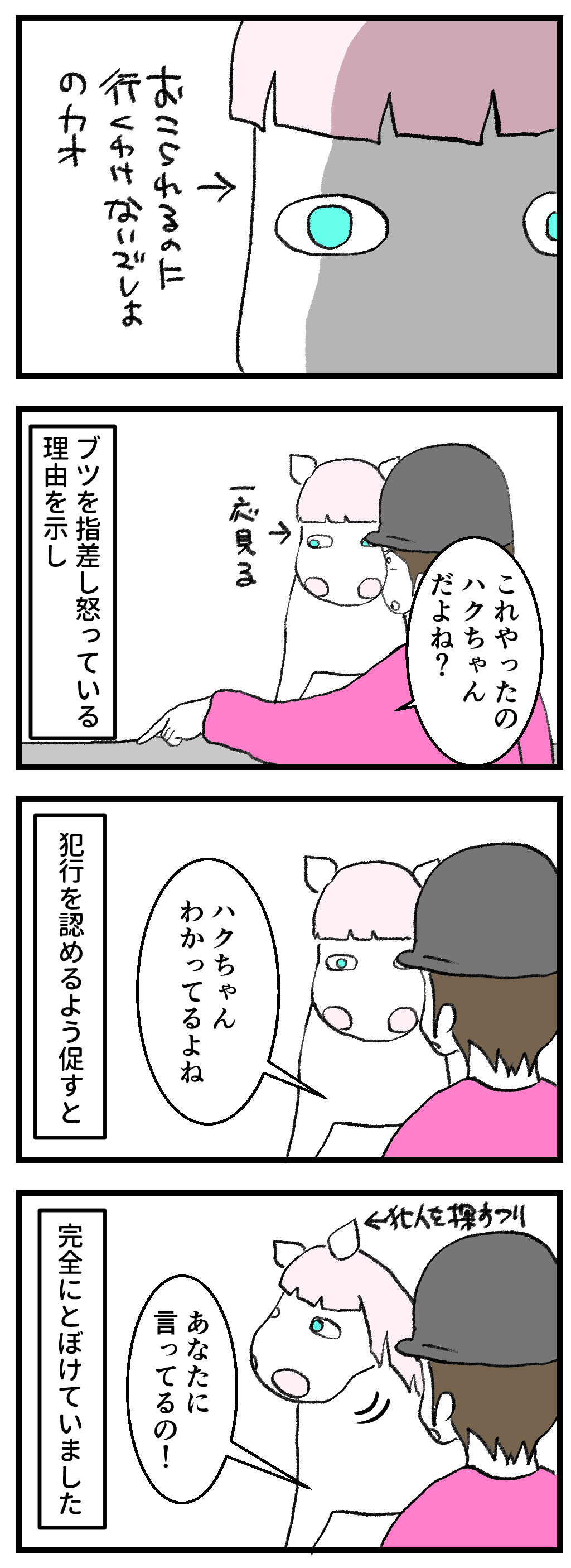 するとハクちゃんはおねだりが足りないのかと思い、顔を左右交互に傾けながらさらにフレーメンを強化。それが子供の顔の間近で行われるものだからすっかり戦意喪失となり、ジリジリと後退して出口まで逃げる子も続出です。