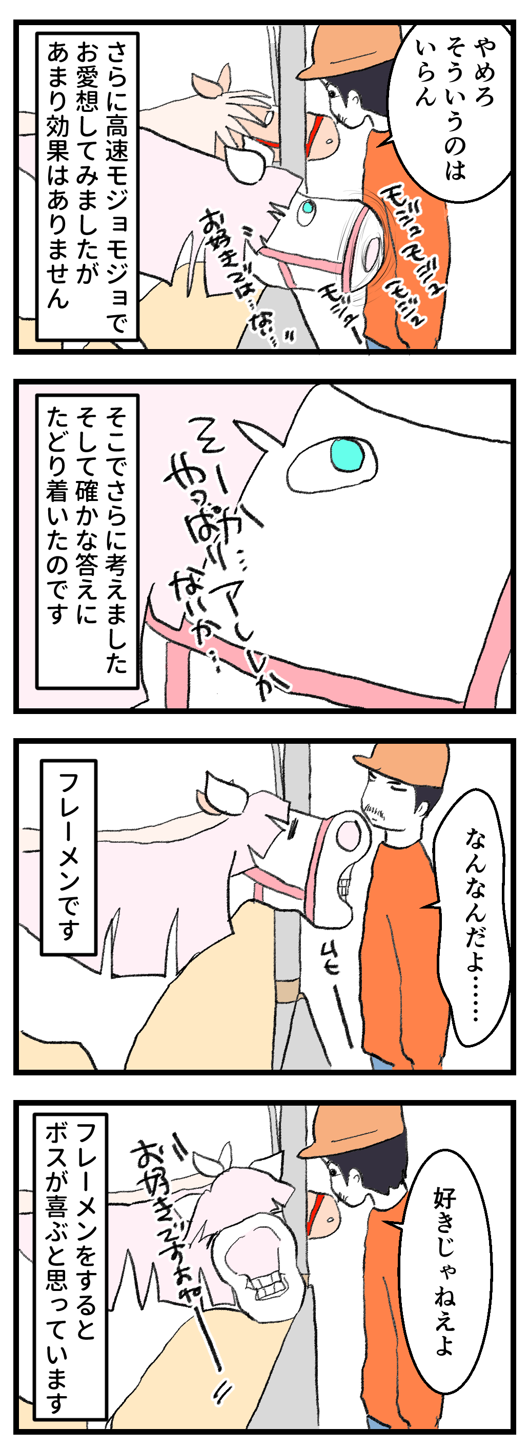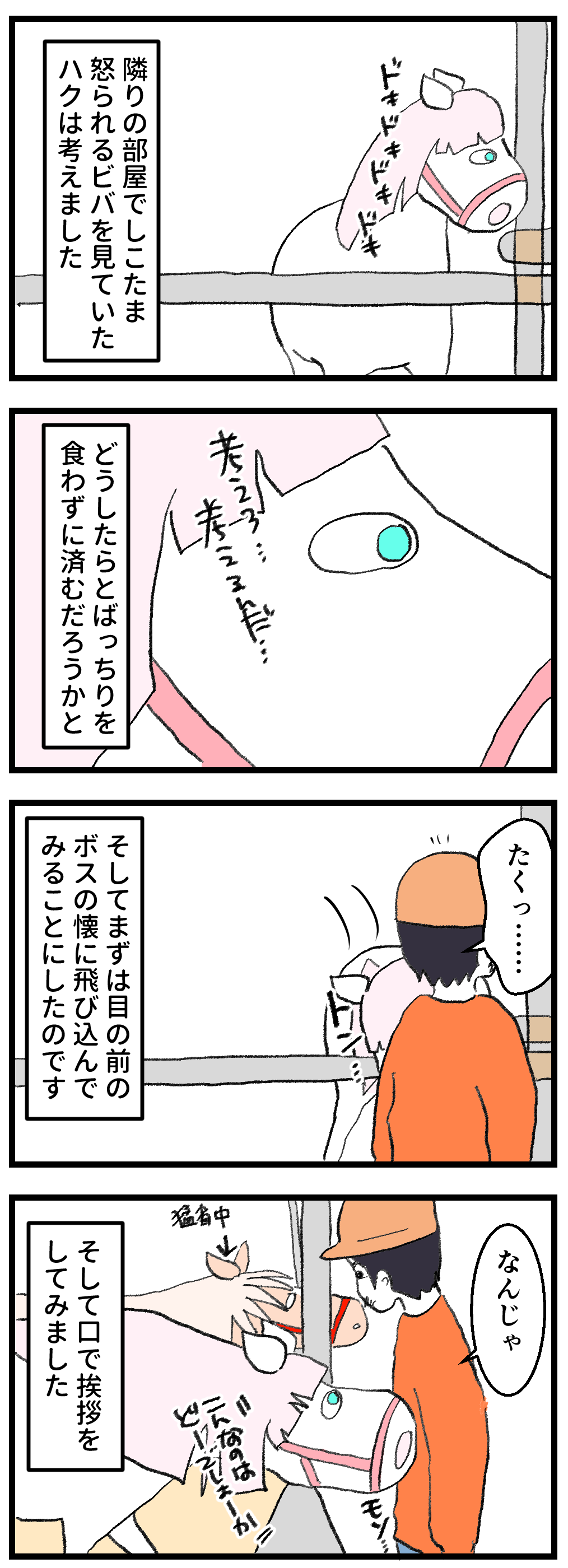 2025年12月27日 怒られているビバを見たハクちゃん 手数が少ない今年何回ハクちゃんのフレーメンを見たことか。数え切れませんが、薄いフレーメンから特大まで、100回以上は見ていると思います。馬のフレーメンを生で見たいという方はぜひ、うちに来てください。お待ちしてます!