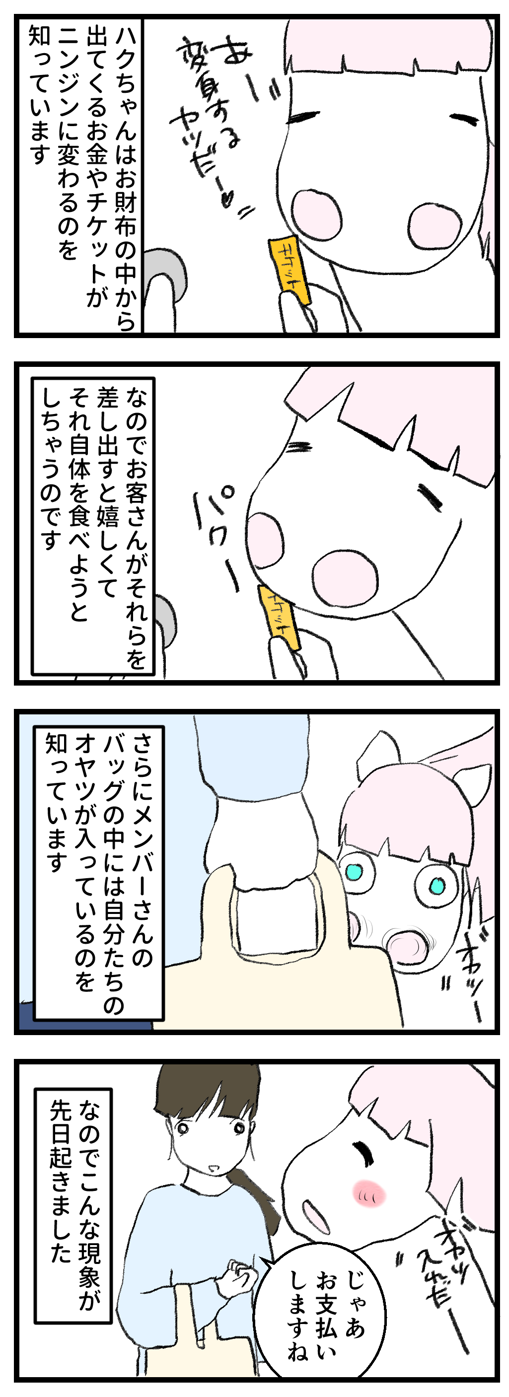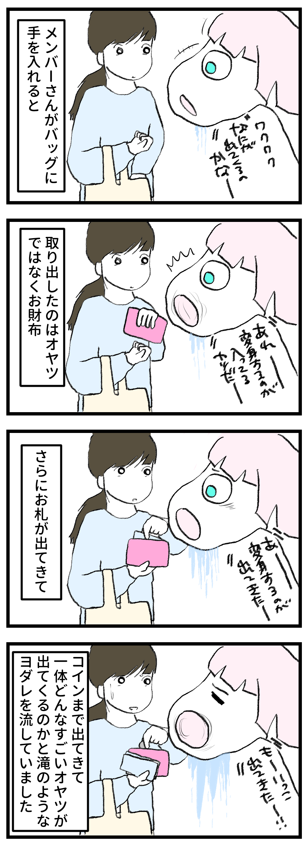 2026年01月28日 ハクの大好物 ダラダラ食べ物に関して本当に記憶力に優れているハクちゃんは、日頃の営業をよく見ているため、ニンジンが出てくる仕組みを熟知しています。なので、お財布、チケット、100円玉が大好き笑さらにメンバーさんのバッグはオヤツが出てくる魅惑の入れ物。それらがすべて組み合わさった時、尋常ではない量のヨダレが出るようです。