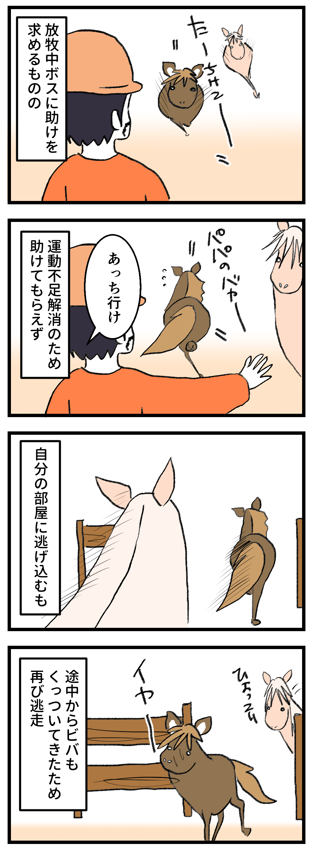 2026年01月17日 試練の放牧 明日に続くこれまではボスや私の後ろに隠れて難を逃れていましたが、この日のボスはスパルタ。日頃の運動解消のために風花はおとなたちが大運動会を繰り広げる中、放り出されたのでした。そして部屋の中に飛び込み隠れるも、途中からビバに見つかりストーカーされ、最終的に逃げ込んだのがビバの部屋。ビバに詰められて、久しぶりに口をパクパクさせて非力な仔馬アピールをしていました。ただ、これで終わりではなかったのです。小さな判断の過ちが、大きな悲劇を生んでしまったのでした。 カテゴリなしの他の記事