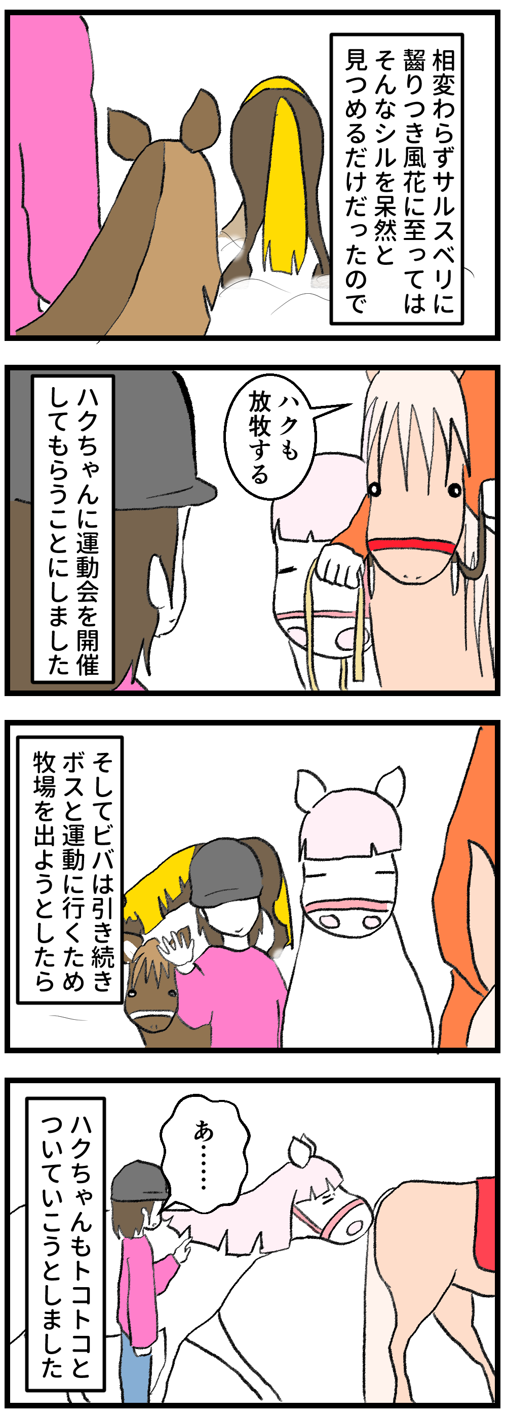 2026年02月11日 ハクのプライド 最後はみんなで運動会ビバとのドナドナは好きなのでしょうか。置いていかれるのは嫌なようでしたが、女子に混じるのも嫌だったのか……。そしてこの日も微動だにしないシルと風花。最後はボスとビバに追いかけ倒されて強制運動の運びとなりました。