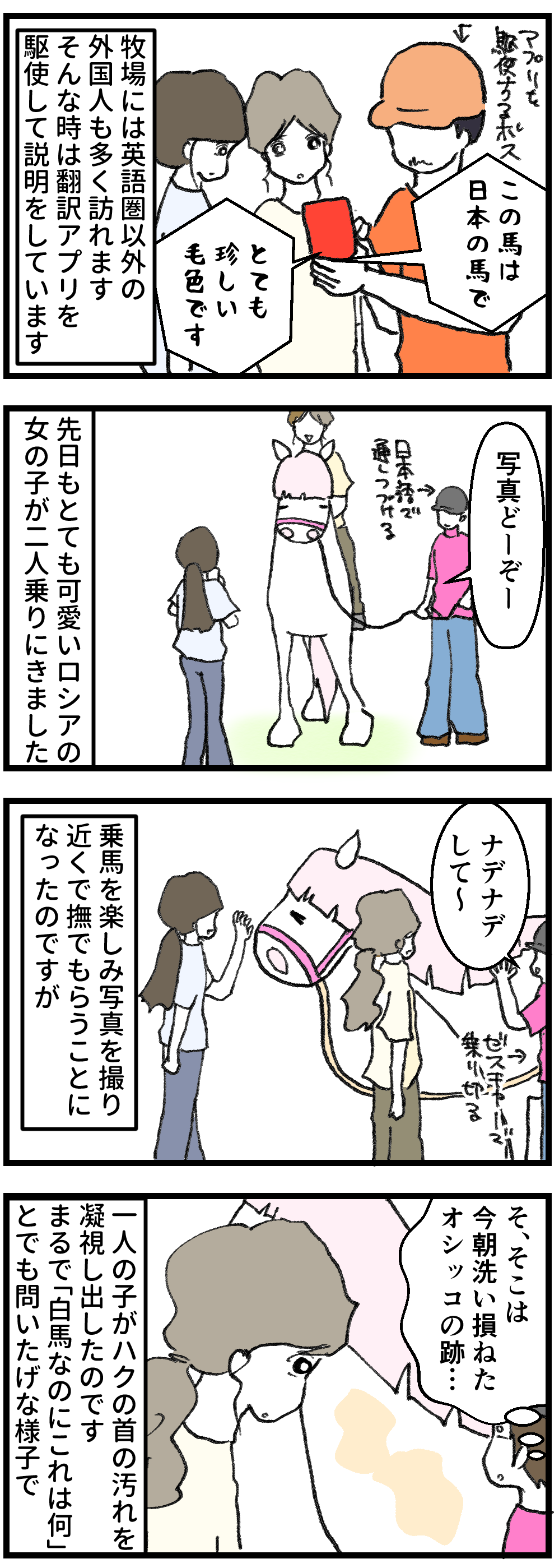 そんな方々が牧場に来られると、まず何語が通じるか、から始まるのです。