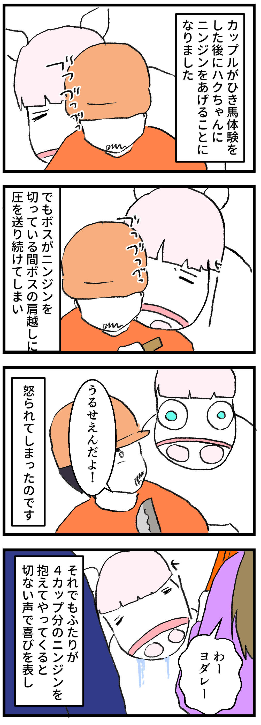 2026年01月12日 ハクちゃんの冬季特別任務 ダダ漏れの感情とヨダレ独り占めなはずなのに、気になるのはやっぱり厩舎にいる他のウマコたち。何がなんでも全部もらう気満々なため、ヨダレを撒き散らしながら全力で追いかけます。