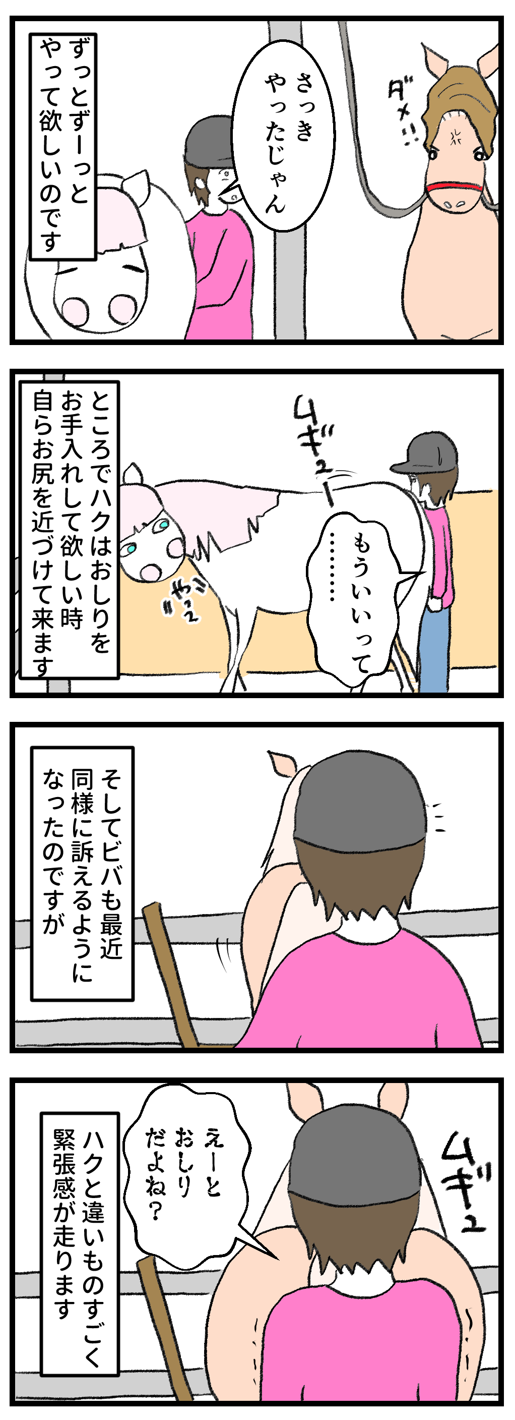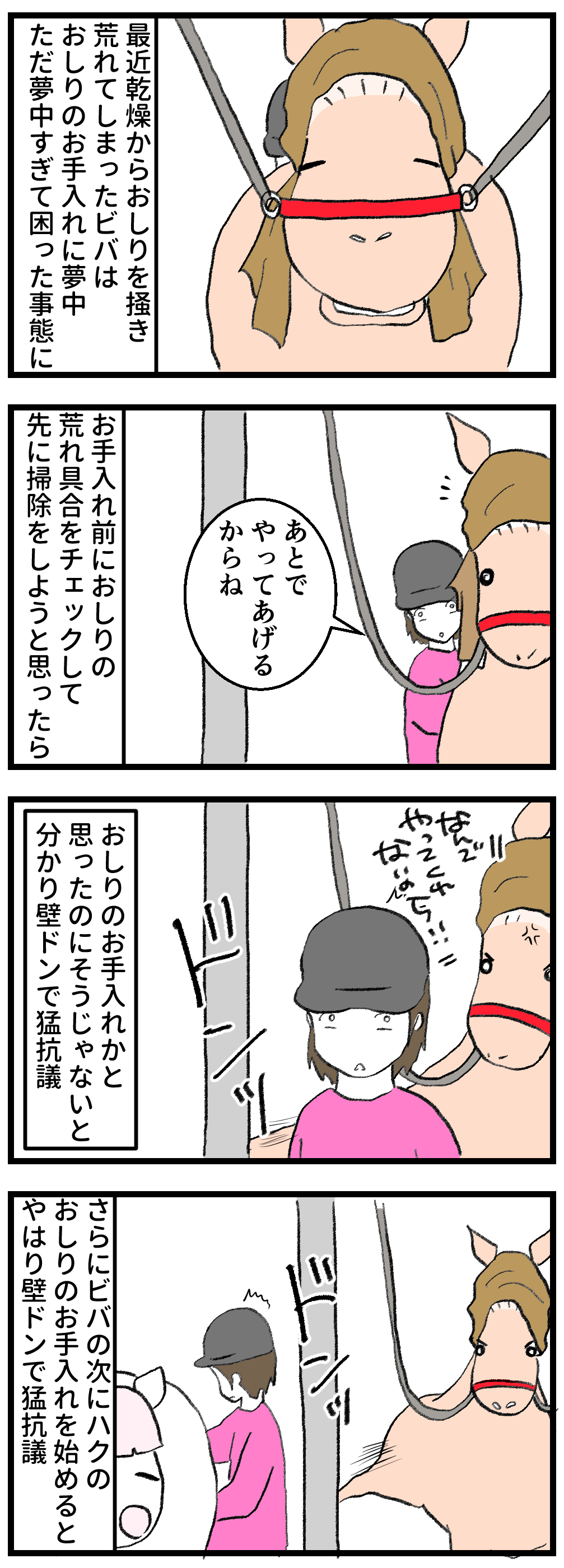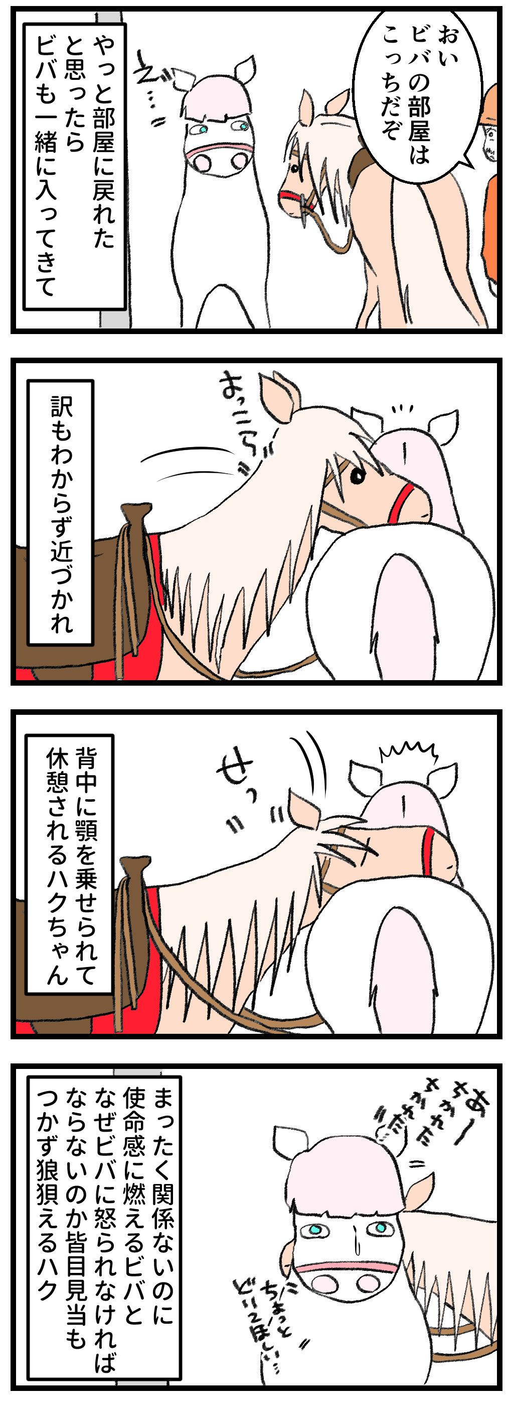 ハクが我が家に来た時、駆虫するために薬を塗った際、ビバもタテガミをモミモミされて薬がヒリヒリと痛かった記憶があり、そこから獣医師が苦手になりました。