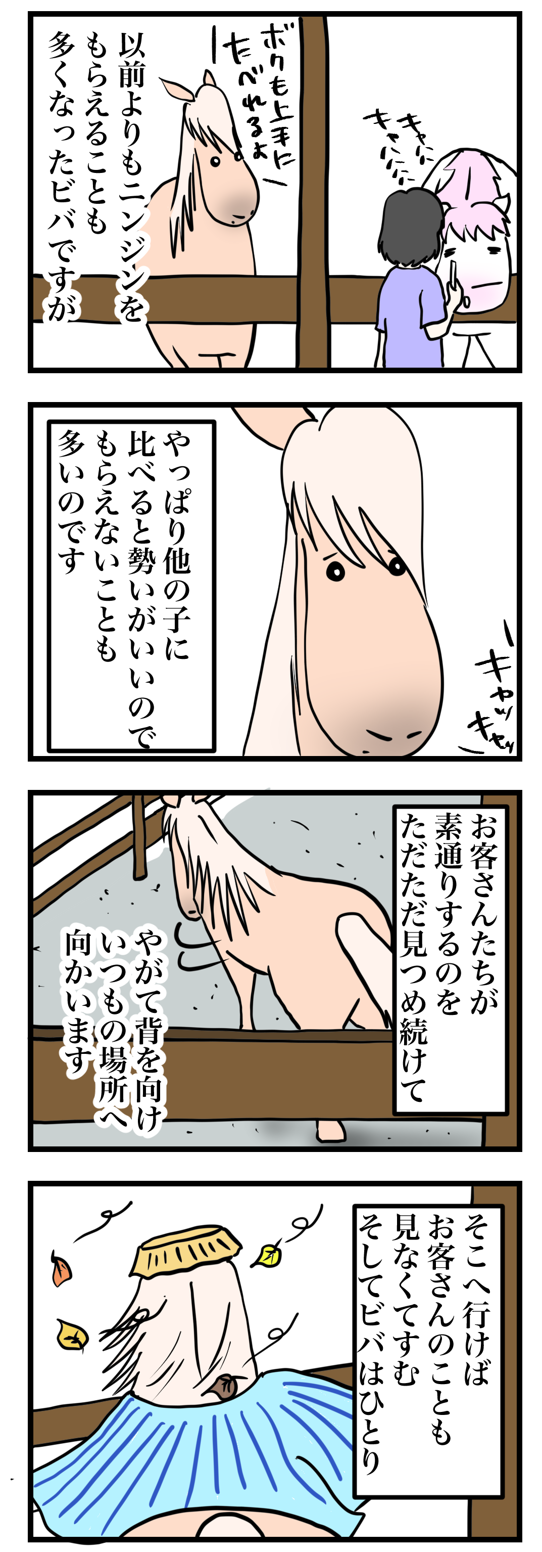 居た堪れなくなったビバはふいっと後ろを向くとみんなに背を向けていつもの場所に。
