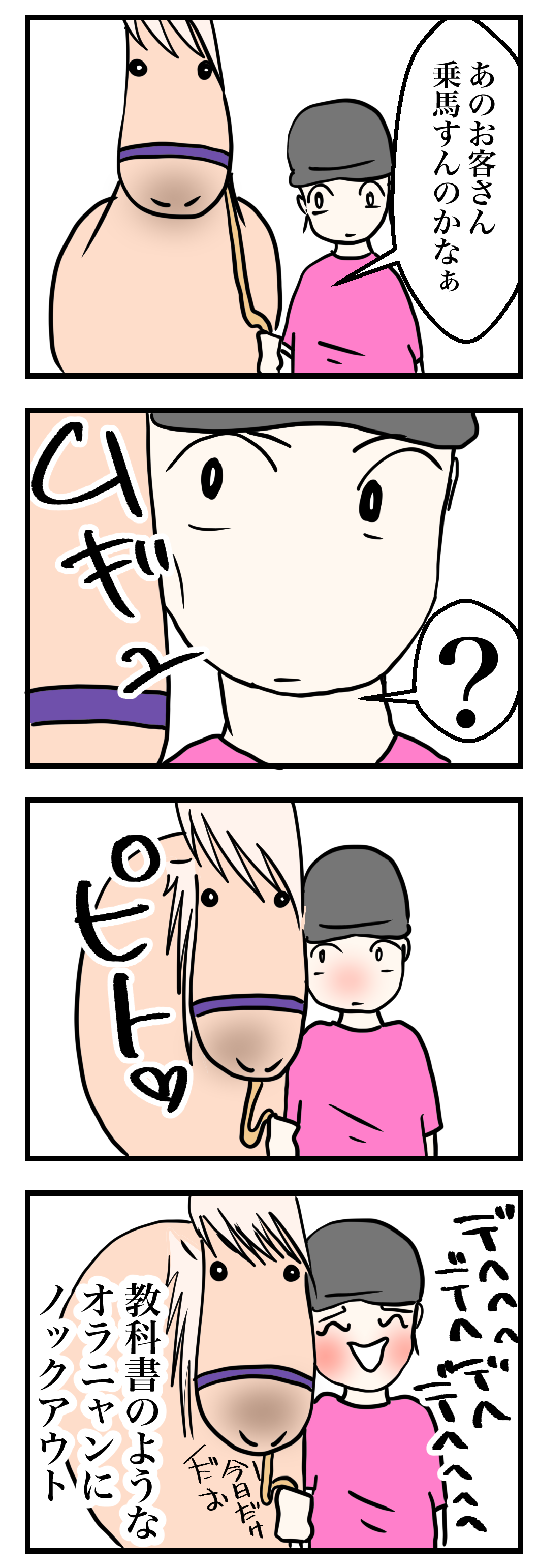 ただその直後、ニンジンを握り締めたお客さんを視界に入れた途端、ニコニコ顔でルンルンと小走りに駆け寄ってきたのはいうまでもありません。