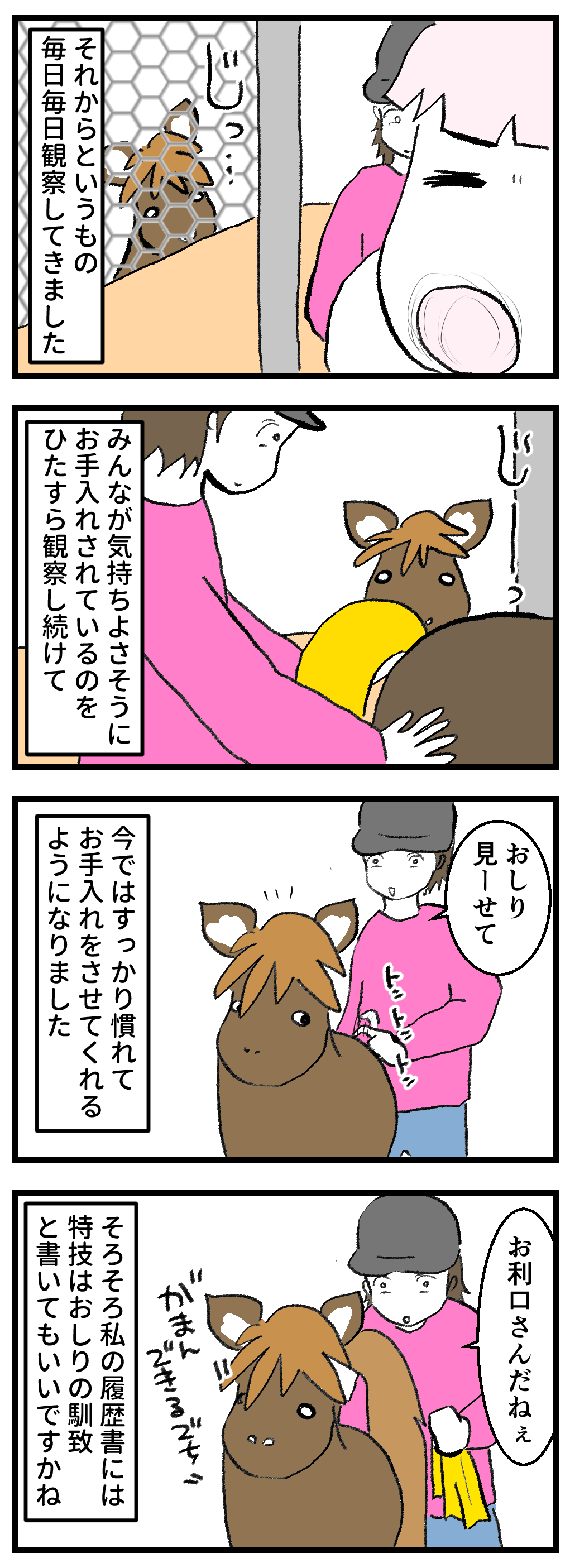 ハフリンガーと北海道和種のハーフなのでせめて体高130は超えてほしいのですが、現在115ほど。
