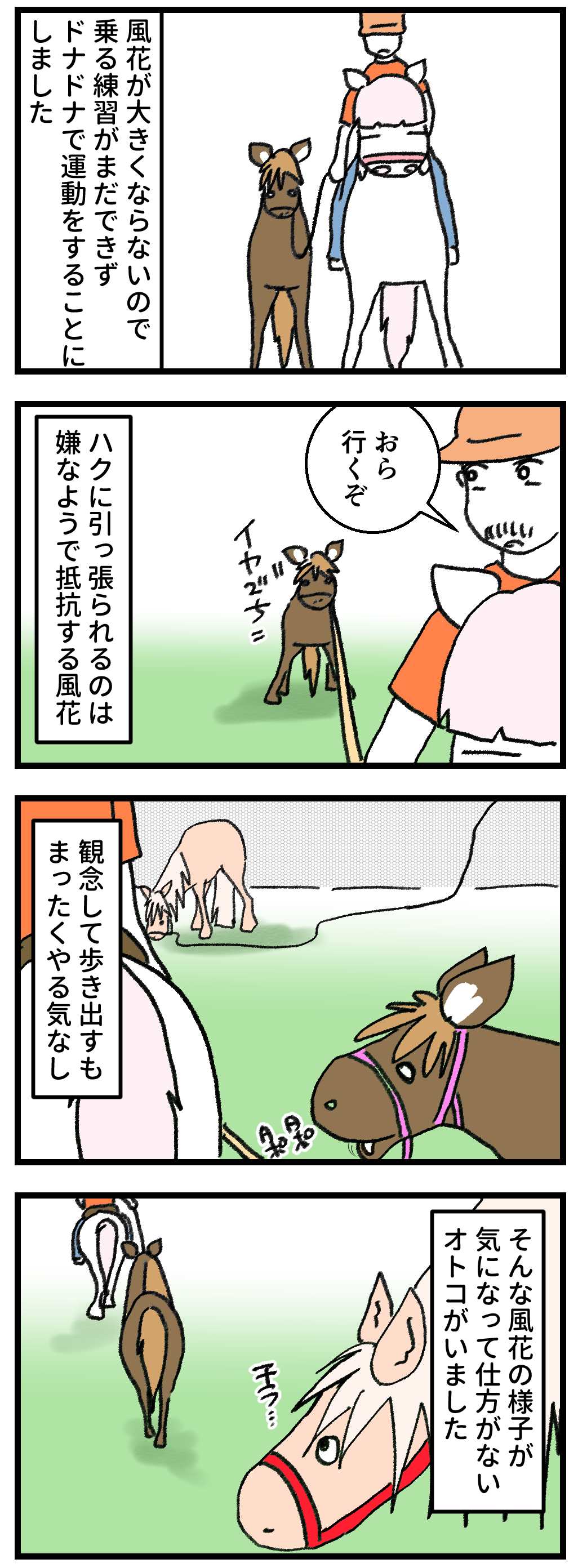 誰に似たのか運動がそんなに好きではなさそうな風花。昨年我が家に来た生後半年の時から放牧しても仔馬らしくピョコンピョコンと走る姿をあまり見たことがありません。