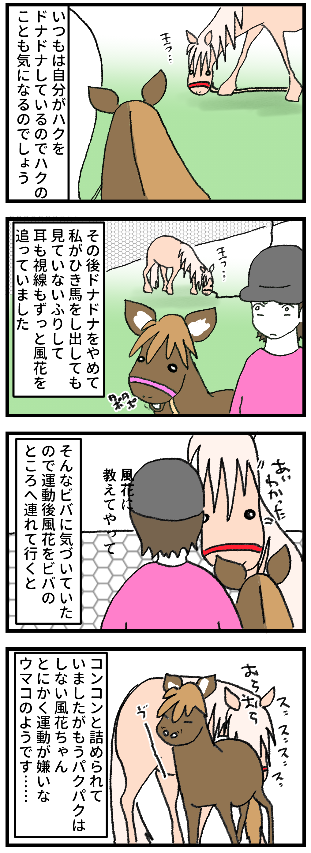 まったくやる気のない風花をまったくやる気のないハクでドナドナしていると、ビバが終始様子をうかがっていました。