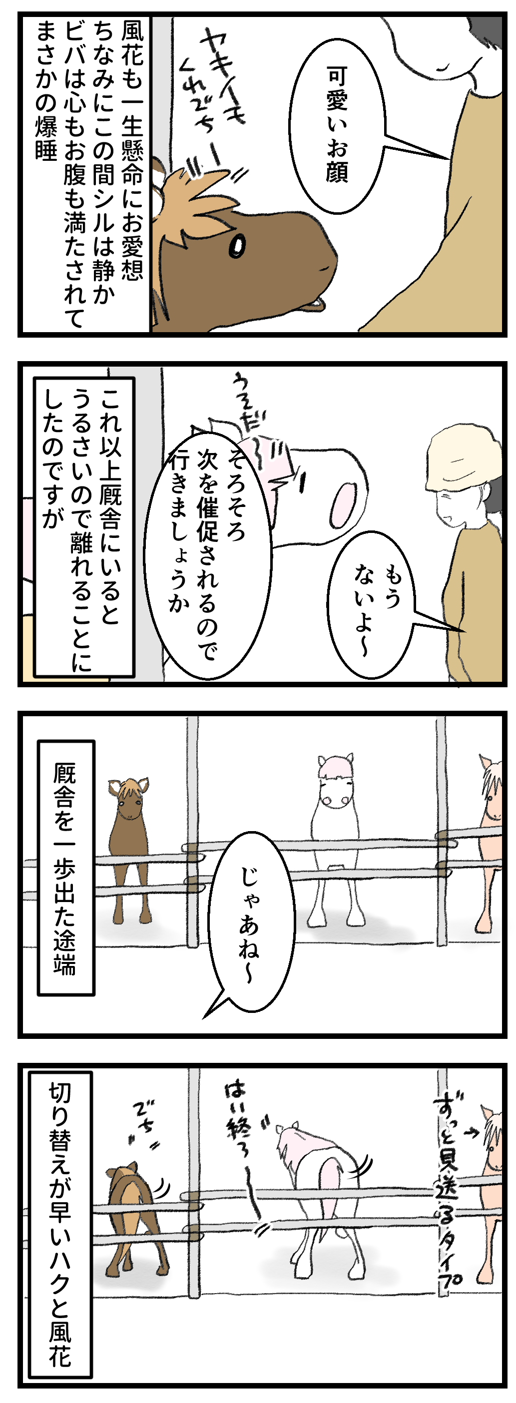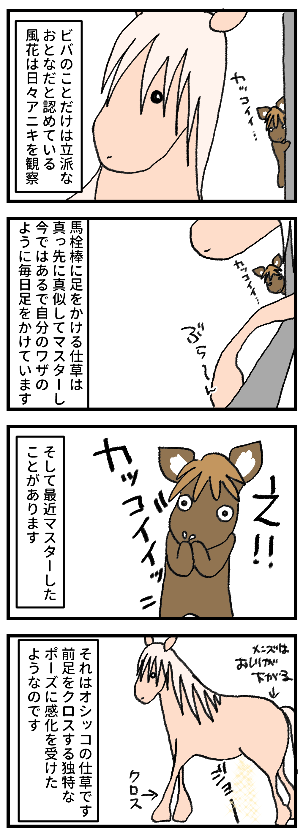 しばらくの間遊んであげないと、後々拗らせるため、ボスが駆けつけて、いかにビバが可愛くて立派な馬かを伝え(てるわけではないけど)る必要がある、少々(かなり)面倒なウマコなのでした。