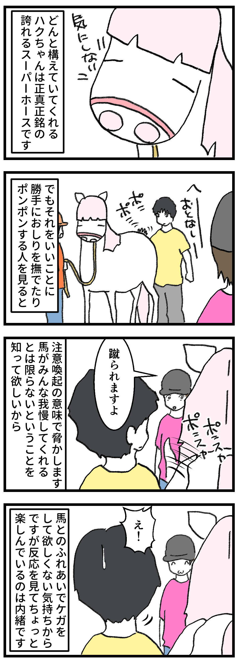 ちなみにボスの場合、蹴られたり噛まれた場合どれくらい酷いかをこれでもかというくらい具体的に説明するので、みなさんドン引きしています。