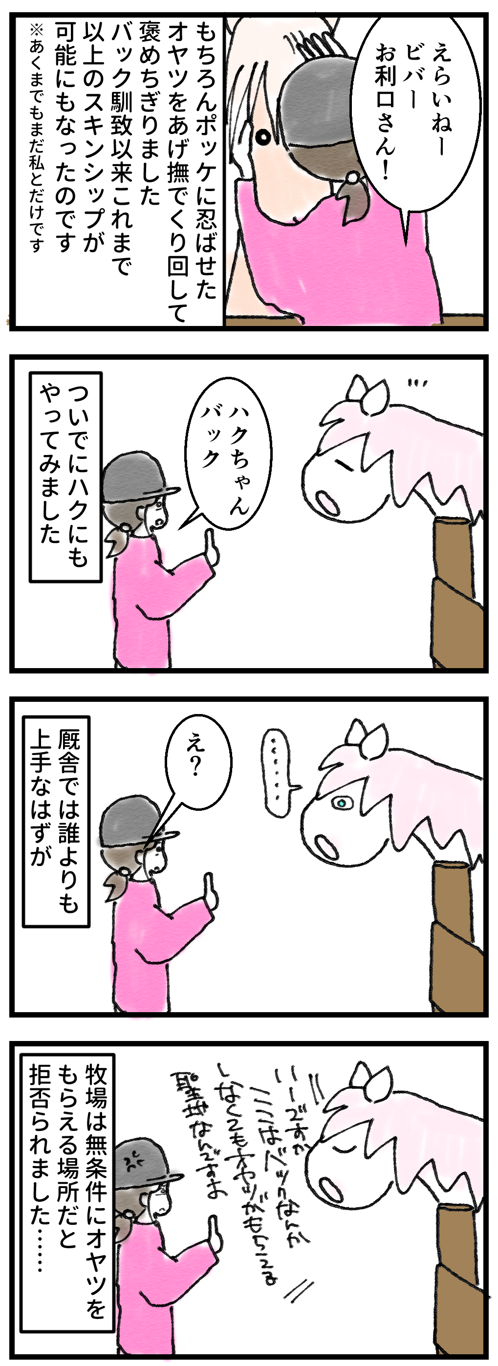 2025年03月20日 省エネハクの主張 自称餌やり体験係 相手の関係性って未知数だなあと思います。それは人でも馬でもほかの生き物でも同じなんでしょうね。相手に変わることを期待するのではなく、自分を変えたりやり方を工夫してみたり、諦めないことが大事なのかもしれません。なんて思いに浸っていてもそれをぶち壊すのが白力王。持論を持っているため、無条件でお客さんからオヤツをもらえる牧場では渋々バックしていました……。今日は雪から一変、いいお天気になりそうな春分の日。たくさんお客さんが来てくれるといいなぁ……。