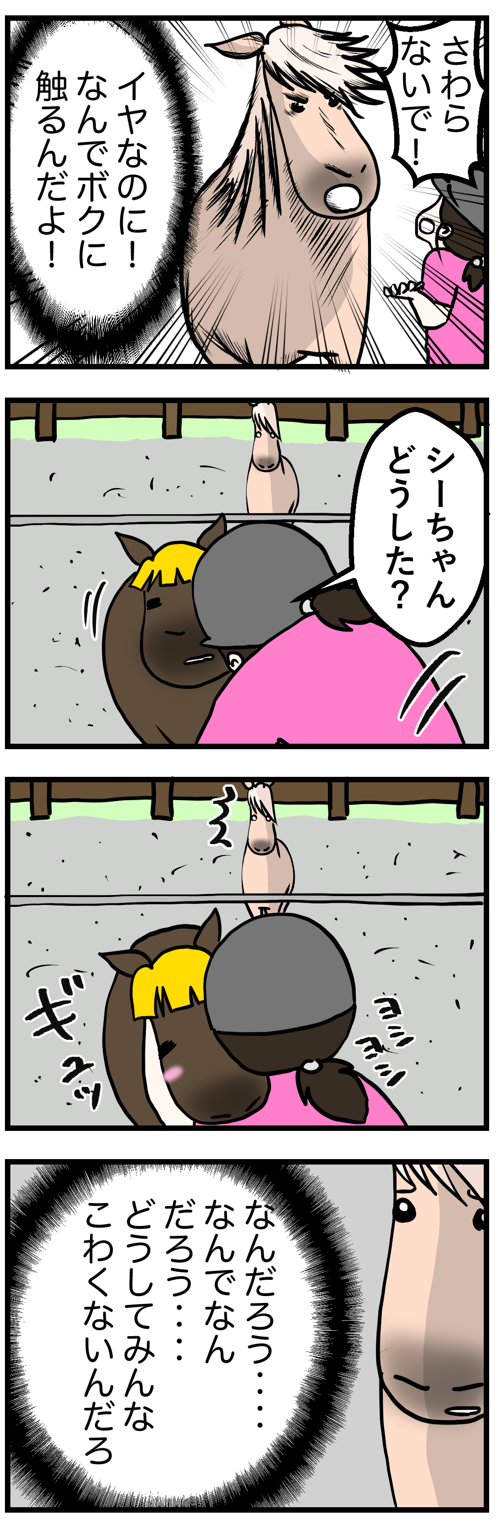 しかも口の中にはハミがかかっているときはとくに、思うように草が入っていかない。