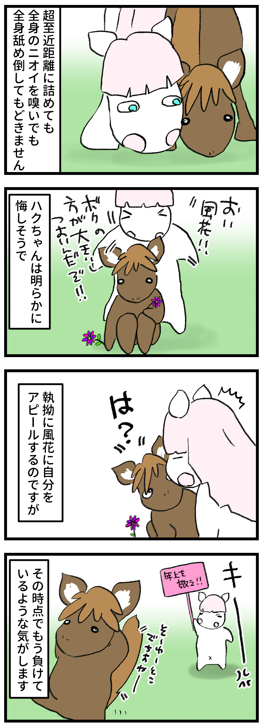 散々風花を追いかけて蹴り倒すものだから、さすがに止めに入ったら、即風花は身の安全確保に来ました。